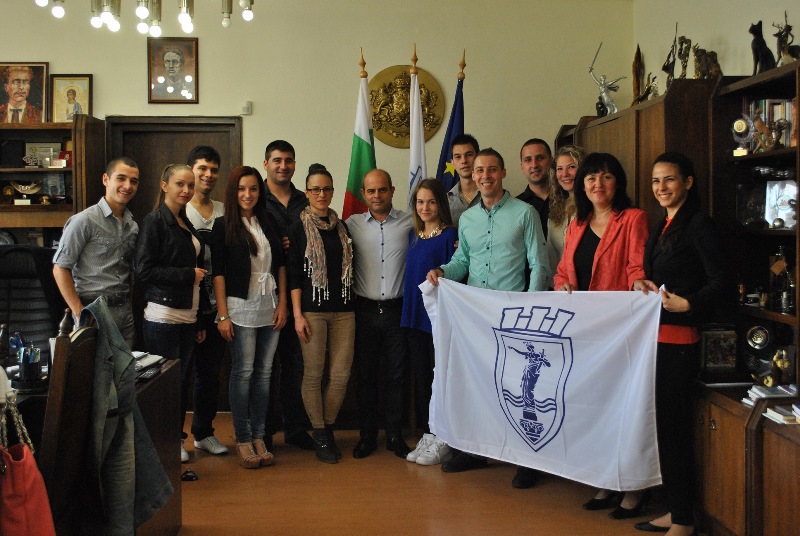 Знаме с герба на Община Русе връчи днес кметът Пламен Стоилов на Фолклорен Танцов Театър „Найден Киров“. Поводът за подаръка е предстоящото участие на ансамбъла в Международния фолклорен фестивал „Венец на дружбата“ в Беларус. „Пожелавам този флаг да ви носи късмет, да се окичите с лаври и много, много успехи. Развявайте знамето на Община Русе при всичките си участия извън България.“, каза кметът Пламен Стоилов на младежите от танцовия театър и техните хореографи Богдан Донев и Мониела Добрева, които гостуваха в Общината.